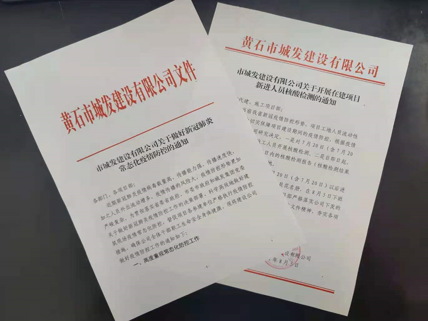 鑒于項(xiàng)目工地人員密集,流動(dòng)性大的特點(diǎn),8月5日,公司印發(fā)了《市城發(fā)建設(shè)有限公司關(guān)于開(kāi)展在建項(xiàng)目新進(jìn)人員核酸檢測(cè)的通知》,為切實(shí)擔(dān)負(fù)起防疫抗疫責(zé)任,有效降低人員流動(dòng)引發(fā)的疫情傳播風(fēng)險(xiǎn),要求7月20日以來(lái)新進(jìn)項(xiàng)目員工須持3日內(nèi)合格核酸報(bào)告進(jìn)入項(xiàng)目工地。