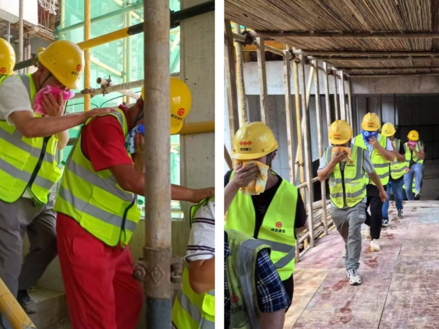 活動(dòng)包含安全通道應(yīng)急疏散演練、“安全宣傳咨詢?nèi)铡薄踩[患大排查等內(nèi)容。演練以項(xiàng)目6#樓4層焊接作業(yè)時(shí),焊點(diǎn)處火星迸濺導(dǎo)致樓內(nèi)堆放的易燃建筑材料起火為模擬場景,各應(yīng)急演練小組反應(yīng)迅速、密切配合、有序高效地完成了疏散逃生、滅火救援等內(nèi)容。本次演練為應(yīng)對(duì)施工項(xiàng)目現(xiàn)場真實(shí)火災(zāi)事故提供了有力保障。