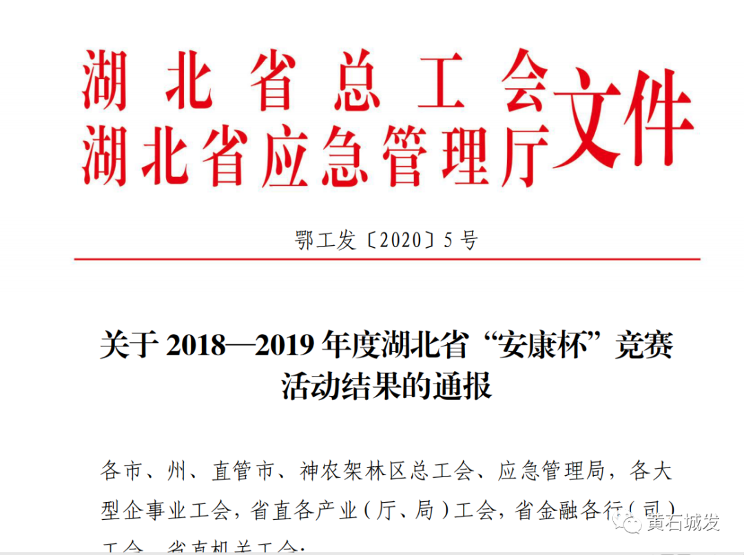 【集團(tuán)要聞】集團(tuán)公司獲評2018—2019年度湖北省“安康杯”競賽優(yōu)勝單位