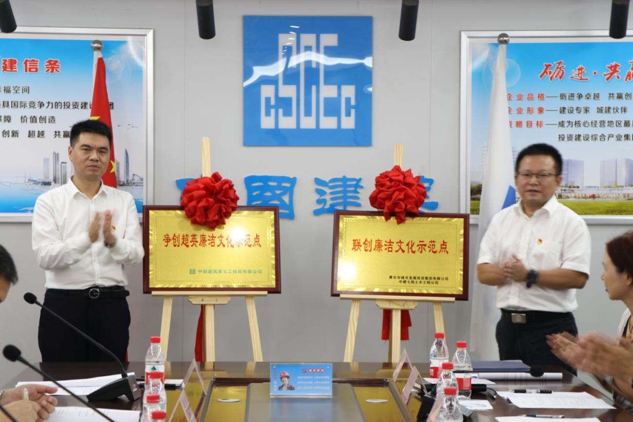 啟動(dòng)儀式上,觀看了習(xí)近平總書記“七一”講話視頻、《向城而生》宣傳片、陳超英事跡新聞《時(shí)代先鋒:陳超英》。宣讀了“超英廉潔文化示范點(diǎn)”聯(lián)創(chuàng)共建實(shí)施方案。聯(lián)創(chuàng)共建“三方”紀(jì)委書記共同簽訂《“超英廉潔文化示范點(diǎn)”聯(lián)創(chuàng)共建協(xié)議書》。集體宣讀廉潔從業(yè)誓詞、向廉潔監(jiān)督員頒發(fā)聘書,為奮斗在項(xiàng)目一線的黨員、管理人員和青年代表授旗,為項(xiàng)目部“廉潔書屋”贈(zèng)送廉潔文化書籍。隨后,在熱烈的掌聲中,黃訓(xùn)能、李艷志共同為項(xiàng)目“爭(zhēng)創(chuàng)超英廉潔文化示范點(diǎn)”“聯(lián)創(chuàng)廉潔文化示范點(diǎn)”揭牌。